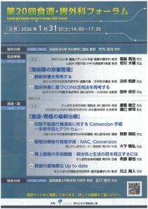 2026年1月31日(土)、品川プリンスホテルにて「第20回食道・胃外科フォーラム」が開催されました。 臨床栄養…