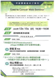 特別講演を岐阜大学大学院医学系研究科 消化器外科・小児外科学 教授 松橋 延壽先生に座長を務めて頂き、藤田医科大学医学部 消化器外科学講座 教授 ばんたね病院 病院長 堀口明彦先生に「膵臓外科の進歩」を講演頂きました。