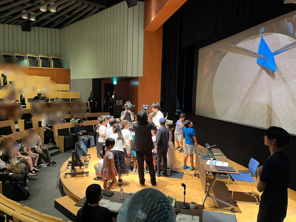 当科の畑中勇治先生が『魅せる!外科医のスゴッ技LIVE!』で腹腔鏡の体験コーナーを担当し、持針器を巧みに操って折り鶴を作り、会場を沸かせました。