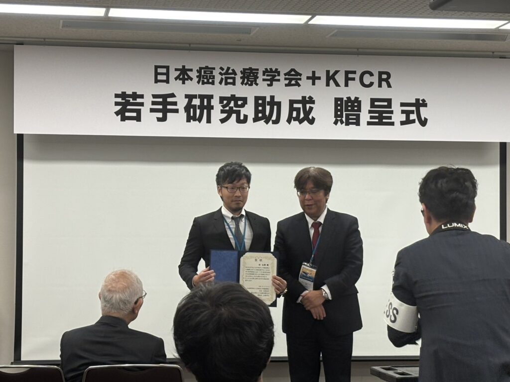 2025年10月17日(金)、第63回日本癌治療学会において、日本癌治療学会+KFCR(Kobayashi Foundation for Cancer Research,小林がん学術振興会)の「若手研究助成 授賞式」が開催されました。