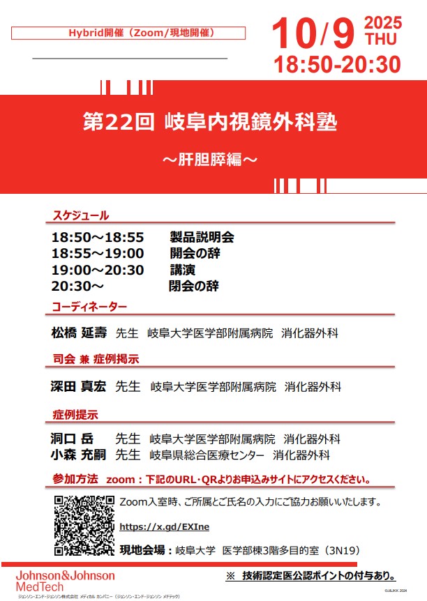 2025年10月9日(木)、第22回 岐阜内視鏡外科塾 ~肝胆膵編~ がhybrid開催されました。