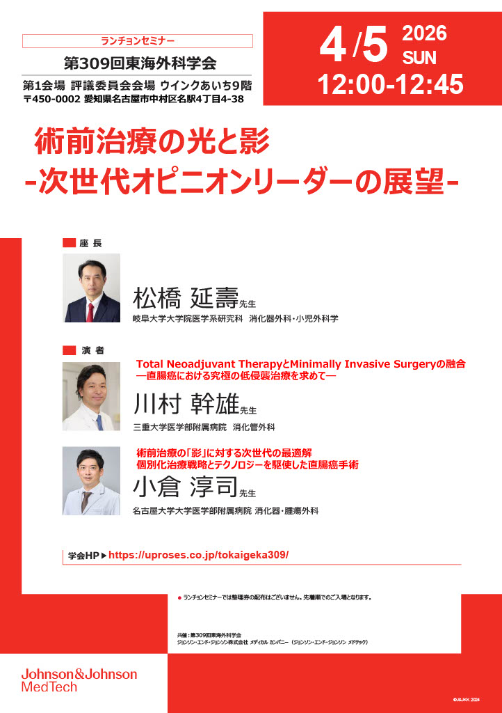 2026年4月5日(日)、ウインクあいちにて、第309回 東海外科学会のランチョンセミナーが開催されました。