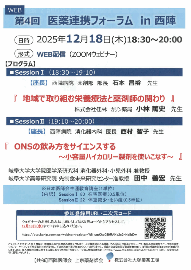 2025年12月18日(木)、第4回 医薬連携フォーラム in西陣がWEB開催されました。