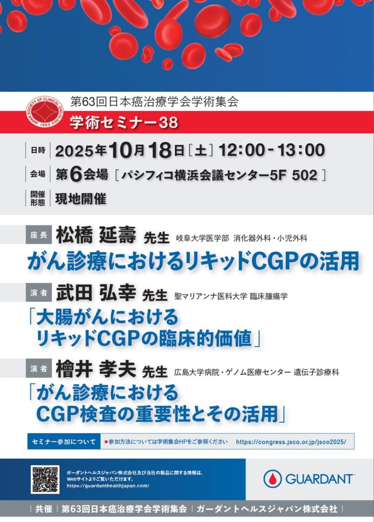2025年10月18日(土)、第63回日本癌治療学会@パシフィコ横浜にて、ランチョンセミナー「がん診療におけるリキッドCGPの活用」が開催されました。