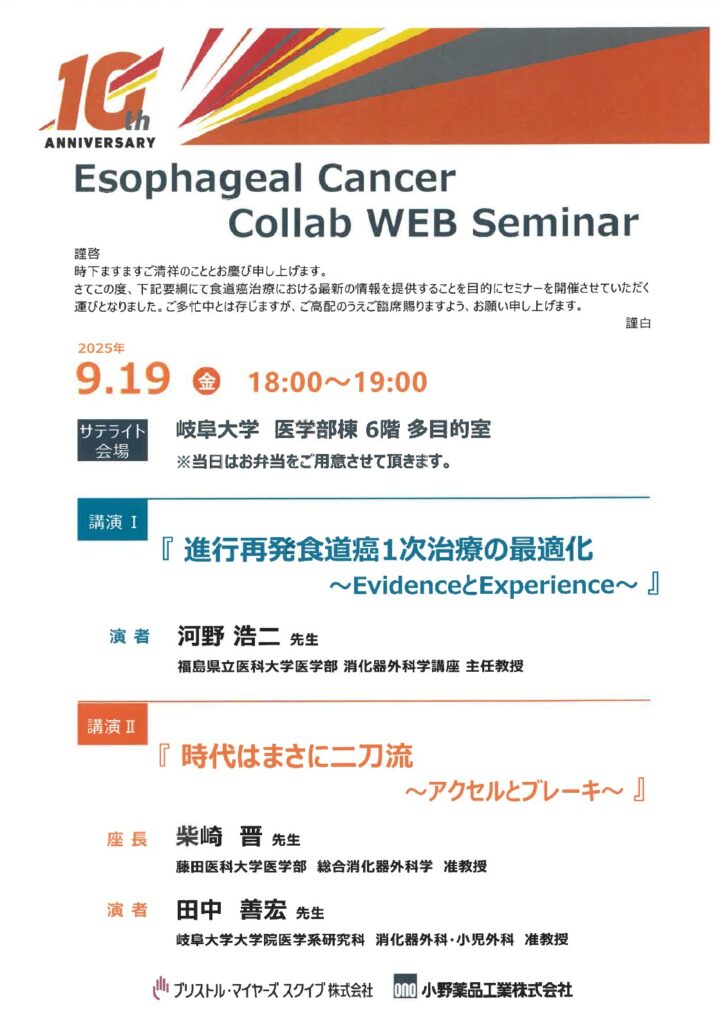 2025年9月19日(金)に「Esophageal Cancer Collab WEB Seminar」が開催されました。
