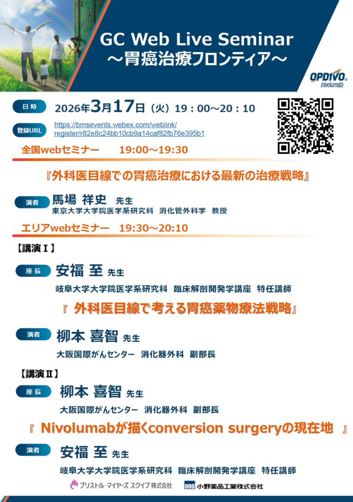 2026年3月17日(水)、WEBにて「GC Web Live Seminar 〜胃癌治療フロンティア〜」が開催されました。